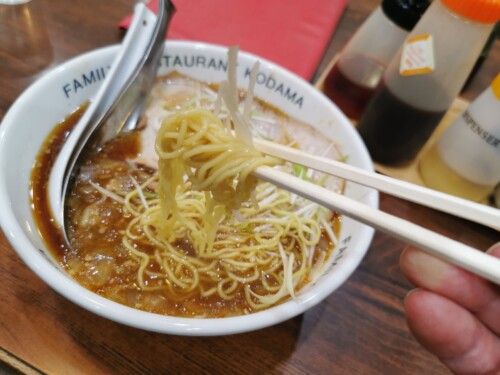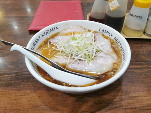 10月28日(火)勝浦市鵜原駅近くにある『こだま食堂』に行ってきました。当店のお客様に聞いたもので、一度行ってみたかったお店です。国道128号線勝浦市松部漁港を過ぎ、トンネルを越えて行くと鵜原漁港、鵜原理想郷方面へ鵜原駅を過ぎると、こだま食堂があります。今回はバイクでしたので、駐車場の苦労はありませんでしたが、車の場合は駐車場に限りがありますのでご注意を。1時過ぎにお邪魔したのですが結構混雑しています。肉屋さんも経営していて勝浦タンタンメンの他、肉料理もおいしいようです。ポークソテーやカツカレーなどを注文しているお客さんもいました。私はチャーシュータンタンメンを注文、辛さはなく程よいスープでチャーシューがとても美味しかった。次回はポークソテーでも食べてみようかと思っています。