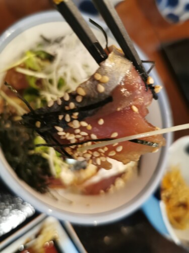 12月23日(火)銚子市にある『丼屋 七兵衛』サバの丼を食べに行ってきました。サバは冬の時期が脂ものって美味しいらしく、早速お邪魔しました。13時30分頃到着、満席ではありませんでしたが平日にも関わらず、次から次へとお客が入ってきます。相当な人気店です。サバの丼からマグロ、イワシ、マンボウなどがありました。薄めの味で作ってあり自分好み、ワサビと醤油で味の調整もできました。最後に隣の店で販売しているカステラが付き最後まで楽しませてくれました。夏にはイワシに脂がのり、入梅イワシといいその丼も楽しみです。